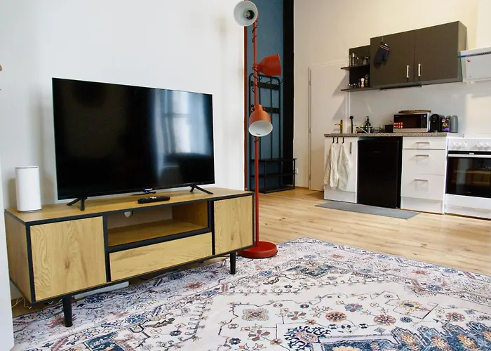 Quest'appartamento è collocato nel distretto Smichov, a circa 25 minuti a piedi dal Vicolo d'Oro e a una distanza di 2 km dal Monastero di Strahov. A 150 m dalla stazione della metropolitana Národní, quest'appartamento si trova anche accanto alla Statua di Franz Kafka. L'appartamento Prague Properties Rental è situato a 1 km dal Municipio della Città Vecchia con l'orologio astronomico.